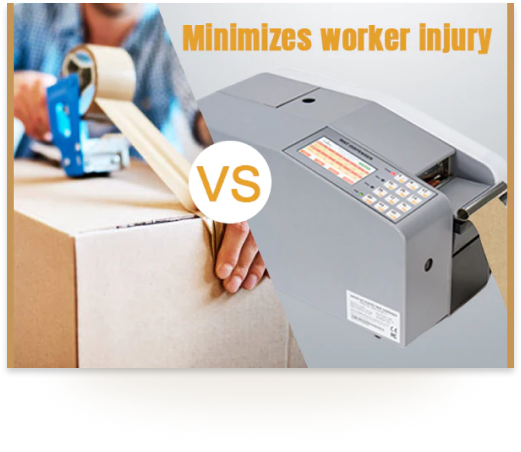 Switch to water-activated tape dispensers for packaging to keep packers safe and avoid repetitive stress injuries.